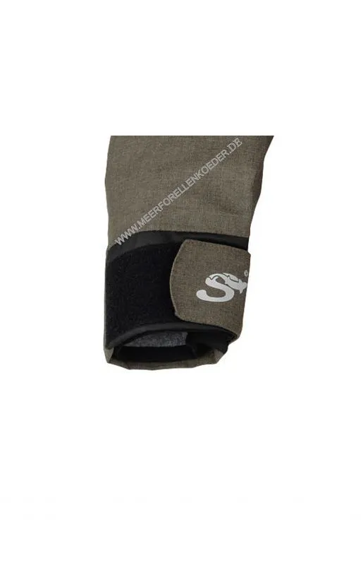 Das innovative und hochrobuste X-Tech Wading Jacket hat mir auf den ersten Blick sehr gut gefallen. Es besteht aus D 300 Shellmaterial mit 100 % Polyester Oxford-Twill und DWR Abschluss. Vorn 2 große und hohe Taschen mit 2 aufgesetzten wasserdichten Taschen , 2 gefütterte Handwärmtaschen dahinter , eine feste aufrollbare ,doppelt verstellbare Kapuze, flexible Bündchen mit Klettverschlüssen an den robusten Außenbündchen, ein guter Schnitt mit speziell geschnittenen Ärmeln und Ellenbogen für perfektes Werfen sowie eine schöne gedeckte Farbe sind die highlights dieser Jacke. Erfahrene Bekleidungsspezialisten vereinen unter Verwendung von erstklassigem Grundmaterial und Gewebesorten einen bequemen Tragekomfort, Funktionstüchtigkeit, Atmungsaktivität und 100% Wasserdichte bei einer Atmungsaktivität von 5000mvp. Die PU Beschichtung sorgen für 100% Wasserdichtigkeit mit einer Wassersäule von 8000mm.  Alle Nähte sind 100% wasserdicht verschweißt.