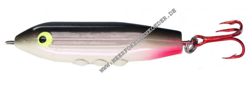 Original Dumhle Wobbler der Meerforellenköder aus Dänemark . Der kleine Wobbler mit den 3 Metallkugeln im Bauch fängt am besten wenn man ihn unregelmäßig führt und gelegentliche Spinstopps einlegt. Alle Dumhle Wobbler werden von Hand lackiert.