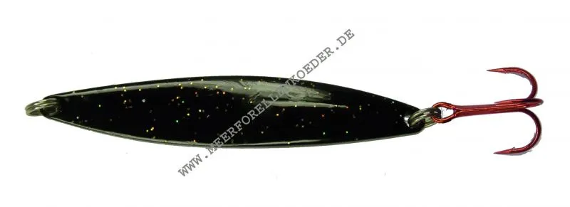 Das Wort Spigg kommt aus dem Dänischen und heißt soviel wie kleiner Stichling. Und in vielen Regionen gehört der Stichling zur Lieblingsbeute der Meerforellen. Aber das heißt nicht das man mit dem Blinker nur dort fischen kann wo es Stichlinge gibt, sondern der Grizzly imitiert auch andere Kleinfische wie Sprotte, kleiner Hering oder auch Aalmutter. Der Grizzly Spigg ist ein kleiner Blinker für Meerforelle, Hornhecht, Wolfsbarsch und Forelle in der Ostsee oder/und im Fluß. Der Blinker wird aus feinstem Edelstahl ausgestanzt und dann mit erprobten Farbkombinationen in Top Qualität von Hand lackiert. Alle Blinker sind mit erstklassigen rostfreien Splitringen und starken Drillingshaken ausgestattet.