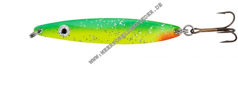 Der Hansenblinker ist ein Spezial-Blinker für das Forellenangeln mit einem legendären Namen im nördlichen Skandinavien. Ausgestattet mit 2 Stück hochwertigen Sprengringen und Black Nickel Tournament Drillingshaken. Der Fight Blinker ist eine Legende an der Küste und wohl jeder hat ihn schon gefischt. Für 2010 kommt der Köder in 6 neuen und 2 altbewährten Farben. Im Gegensatz zu seinem schlanken Bruder kann man den Fight auch langsam noch gut führen, da er nicht so schnell durchsackt. Der Blinker imitiert einen kleinen Beutefisch den sich die Forelle nicht entgehen lassen kann.