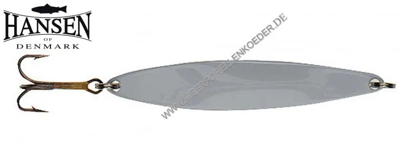 Der Hansenblinker ist ein Spezial-Blinker für das Forellenangeln mit einem legendären Namen im nördlichen Skandinavien. Ausgestattet mit 2 Stück hochwertigen Sprengringen und Black Nickel Tournament Drillingshaken. Der Fight Blinker ist eine Legende an der Küste und wohl jeder hat ihn schon gefischt. Für 2016 kommt der Köder in 5 Sonderfarben. Im Gegensatz zu seinem schlanken Bruder kann man den Fight auch langsam noch gut führen, da er nicht so schnell durchsackt. Der Blinker imitiert einen kleinen Beutefisch den sich die Forelle nicht entgehen lassen kann.