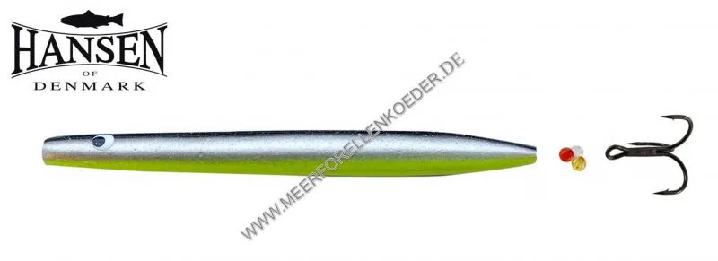 Durch das zusätzliche Gewicht am Schwanz wirft der Mefo-Inliner sich auch super gegen den Wind. Beim Spinstop sinkt der Meerforellenblinker zuerst mit dem Heck ab, so wie echte Tobiasfische die sich im Sand eingraben wollen. Durch diesen Reiz wurden schon viele Meerforellen überlistet. Die neuen Hansen Durchlaufköder werden mit 3 Stück Knotenschutzperlen und super scharfen BKK Drilling mit Sprengring im Blister geliefert. Die Hansen Tobis Inline Blinker sind einzeln verpackt.