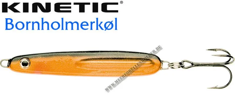 Der Kinetic Bornholmerkøl ist ein flacher Blinker mit einer angegossenen Flosse. Er hat die Form der Originalen Bornholmer. Die Köder lassen sich sehr gut werfen und zeigen beim Spinstop ein verführerisches abtaumeln. Die Kinetic Bornholmerkøl Blinker sind nur mit besten Komponenten ausgestattet wie z.B. VMC 9649 BN Drillingen. Der Bornholmerkøl imitiert ein kleines Fischchen und hat er schon viele Meerforellen und Dorsche überlistet.