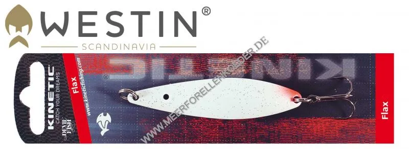 Dieser stark gebogene Köder wurde für alle Arten von Lachs und Forellenfischen in Norwegen sowie anderen Teilen Skandinaviens vor vielen Jahren entworfen. Die Form des Köders kann man als Weidenblatt mit starker S-Form beschreiben. Der traditionelle Blinker erinnert stark an einen Møresilda oder Pilgrim Blinker jedoch ist der Flax breiter und stärker S-Förmig gebogen. Imitieren soll der Meerforellenblinker ein kleines Fischchen z.B. einen kleinen Hering oder eine Sprotte. Besonders interessant ist der spielerisch tänzelnde Lauf mit dem er Meerforellen, Wolfsbarsch, Barsch, Zander und Hecht aber auch feinste Lachse verführt.  Die Flax Blinker sind mit besten Komponenten ausgestattet wie z.B. super scharfen Black Nickel Drillingen.