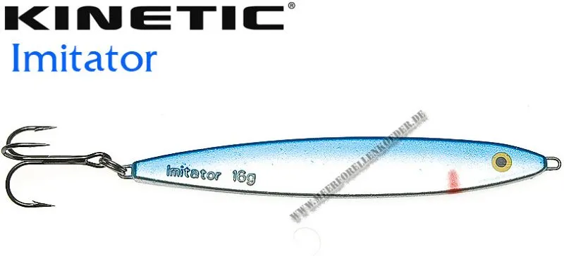 Der Kinetic Imitator ist ein flacher Blinker der zu Ende hin dicker wird. Durch dieses Zusatzgewicht am Schwanzende lassen sich die Köder sehr gut werfen und zeigen beim Spinstop ein verführerisches abtaumeln.Dieser Köder wurde für den Spinstop entwickelt. Kein anderer Köder sinkt verführerischer ab. Die Kinetic Imitator Blinker sind nur mit besten Komponenten ausgestattet wie z.B. VMC 9649 BN Drillingen. Der Blinker imitiert einen kleinen Sandaal und sollte immer mit Spinstop gefischt werden.