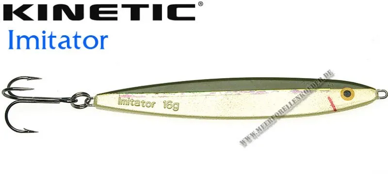 Der Kinetic Imitator ist ein flacher Blinker der zu Ende hin dicker wird. Durch dieses Zusatzgewicht am Schwanzende lassen sich die Köder sehr gut werfen und zeigen beim Spinstop ein verführerisches abtaumeln.Dieser Köder wurde für den Spinstop entwickelt. Kein anderer Köder sinkt verführerischer ab.  Die  Kinetic Imitator Blinker sind nur mit besten Komponenten ausgestattet wie z.B. VMC 9649 BN Drillingen. Der Blinker imitiert einen kleinen Sandaal und sollte immer mit Spinstop gefischt werden.