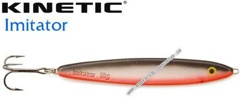 Der Kinetic Imitator ist ein flacher Blinker der zu Ende hin dicker wird. Durch dieses Zusatzgewicht am Schwanzende lassen sich die Köder sehr gut werfen und zeigen beim Spinstop ein verführerisches abtaumeln.Dieser Köder wurde für den Spinstop entwickelt. Kein anderer Köder sinkt verführerischer ab. Die Kinetic Imitator Blinker sind nur mit besten Komponenten ausgestattet wie z.B. VMC 9649 BN Drillingen. Der Blinker imitiert einen kleinen Sandaal und sollte immer mit Spinstop gefischt werden.