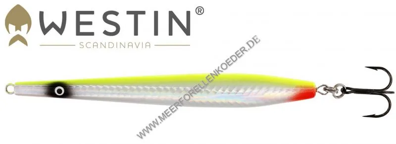 Der Kongetobis Wobbler imitiert perfekt einen Sandaal und ist daher sehr  fängigsten für Meerforelle. Der Meerforellenwobbler ist aufwendig aus ABS Kunststoff mit Zink Gewichten hergestellt und hat als zusätzlichen Reiz bei einigen Farben einen Reflexstreifen.  Der Köder wurde vom Westin Team viel getestet bis er in Produktion ging und ist nur mit besten Komponenten ausgestattet wie z.B. Super scharfe BN Hooks in Gr.1. In Skandinavien gilt er als populärster Tobiswobbler zum Meerforellenangeln. Der Tobyswobbler ist super ausbalanciert und wirft sich sehr gut. In Deutschland ist der Köder auch unter dem Namen  " Ostseekeule ", " Keule " bzw. Keulenwobbler bekannt.