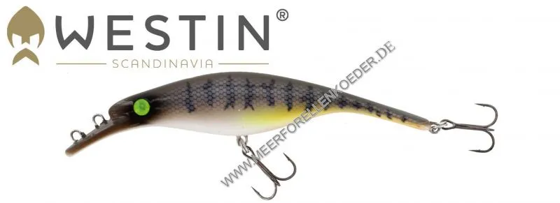 Der Platypus Wobbler imitiert eine kleines Fischen z.B. ein Rotauge, eine Ukelei, eine Sprotte oder einen Hering und ist daher sehr  fängig. Der Westin kann sehr gut zum leichten Schleppangeln an freier Leine aber auch zum Werfen eingesetzt werden. Beim Schleppen an der Küste kann man so tolle Meerforellen aber auch Dorsche fangen. In der vorderen Öse läuft der Wobbler etwa 0,5 bis 0,8m tief . Hängt man den Einhänger in die Hintere Öse geht der Wobbler runter bis 2m Tiefe. Bei einen Spinnstop schwebt der Wobbler auf der Stelle. Gefertigt aus schlagfestem ABS Kunststoff mit durchgehender Drahtachse sind die Wobbler nahezu nicht zu zerstören. Nach 32 Prototypen und unzähligen Stunden für Tests und immer wieder kleinen Verbesserungen hatte Allan Christiansen endlich den Original-Platypus in 160 und 190 mm in Händen. Diese 90 und 120mm-Versionen sind die kleinen und handlichen Brüder des Original-Platypus. Genau wie die größeren Familienmitglieder laufen diese Versionen mit einem sehr aufreizenden Bewegungsmuster, bei dem der Körper um seine eigene Achse rollt und immer wieder die Flanken aufblitzen lässt. Eine weitere tolle Eigenschaft sind die lichtreflektierenden Augen (optic eyes). Sie werden aus eingefärbten lichtleitenden Glasfasern hergestellt und ermöglichen durch Lichtreflexion einen einzigartigen Leuchteffekt.