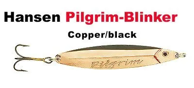 Der neue Pilgrim ist ein klassisch ausgeformter Blinker, der extrem fängig für Forelle und Lachs in Seen und Fliessgewässern ist. Der Blinker wird aus Messing ausgestanzt, wonach er mit einem Schuppenmuster an der Rückseite ausgestattet wird und dann mit erprobten Farbkombinationen bemalt wird. Alle Blinker sind mit erstklassigen rostfreien Splitringenund starken Drillingshaken von Mustad ausgestattet.