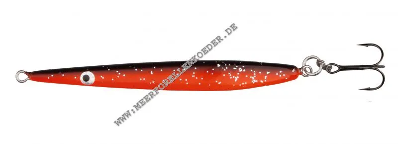 Der Köder wurde in Anlehnung an die Schwimmbewegung eines Tobiasfisches entwickelt. Diese Sandaalimitationen waren lange Zeit ein gut gehütetes Geheimnis der skandinavischen Hardcore Meerforellenangler. Die bleifreien Blinker sind ausgestattet mit 2 Sprengringen und Black Nickel Tournament Drillingshaken. Der Hansen Silver Arrow hat einen sehr schlanken Körper somit erreicht man fast unglaubliche Wurfweiten. Der Sandaalblinker sollte schnell geführt werden denn er imitiert einen kleinen Sandaal. Die Meerforellen haben Sandaale zum fressen gern und lassen sich diese Leckerbissen nicht entgehen.