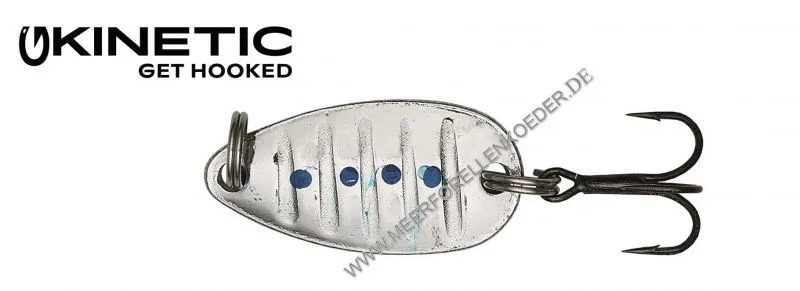 Der kleine Kinetic Oersta ist ein Universal Blinker. Man kann damit gut flache Buchten absuchen aber auch prima im Fluß auf Bachforellen fischen. Der Ørsta wird in Dänemark auch viel an Put and Take See eingesetzt wo er Regenbogen- und Lachsforellen überlistet. Die Köder lassen sich gut werfen und zeigen beim einkurbeln ein verführerischen Lauf. Das Überlistet auch viele Fische am Forellensee / Angelteich. Man kann den kleinen Mini-Blinker auch hinter einem Spirolino /  Bombarde fischen. So erreicht man größere Wurfweiten und fängt auch Fische die sonst nicht zu erreichen waren. Die  Ørsta Blinker sind mit chemisch geschärften Black Nickel Drillingen ausgestattet. Der Oersta Blinker imitiert eine kleines Fischchen und hat schon viele Forellen überlistet.