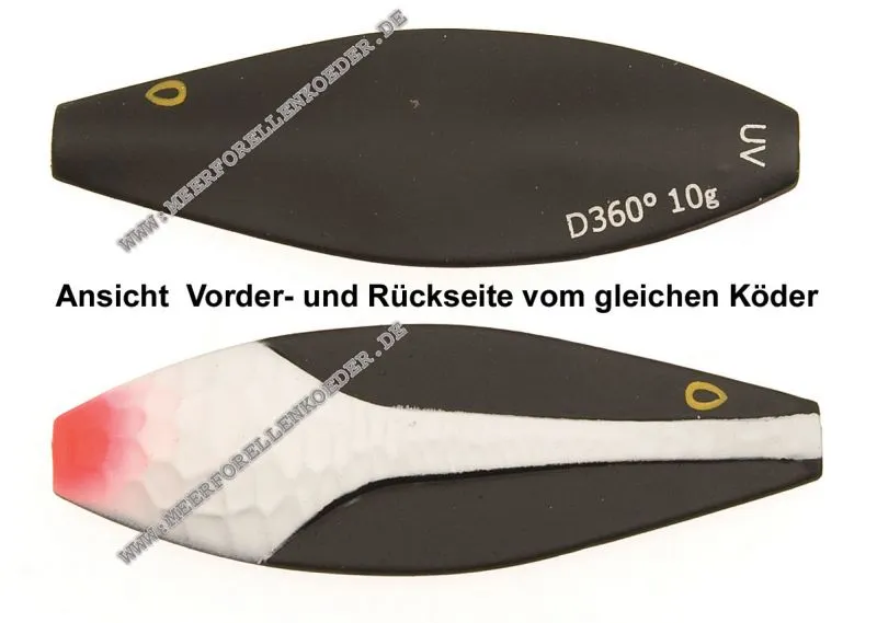 Die 6g -Version ist für Put & Take- Angeln am Forellen See konzipiert. Wenn die Fische vorsichtig beißen kann der D360 °mit extrem langsamen Tempo gefischt werden. Die verschiedenen Kontrastfarben auf Vorder und Rückseite machen oft auch einen großen Unterschied aus. Aber auch beim Fang von wilden Forellen in alpinen Seen ist dieser kleine D360 ° ist einen Versuch wert.