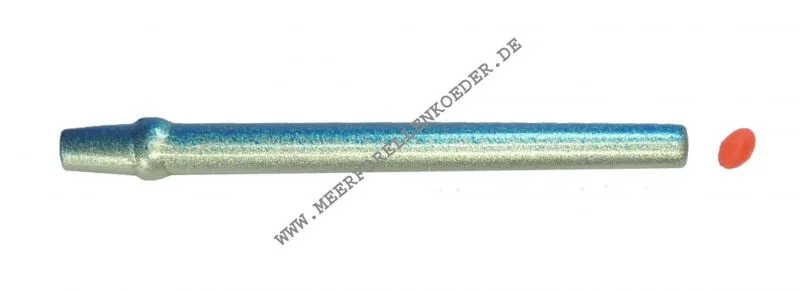 Der Missil Blinker ist etwas außergewöhlich denn er hat eine völlig neue Form. Soetwas haben die Forellen sicher noch nie gesehen. Der Köper des Meerforellenköders ist zigarrenförmig, hat am hinteren Ende eine Verdickung ( Knoten ). Duch diese Form ist der Köder sehr aerodynamisch und fliegt wie ein Pfeil durch die Luft. Der Missil sackt im Wasser schneller durch wie sei Bruder der Torpedo. So kann man auch bei Rauer See etwas tiefer fischen. Trotz der ungewöhnlichen Form hat der Blinker schon viele Meerforellen überlistet aber man weiß nicht genau ob die Fische nur neugierig sind oder darin ein Beutetier erkennen. Man muß den Durchlaufblinker etwas schneller als andere, breitere Blinker führen sonst sackt er zu stark durch und fängt eher Kraut statt Fisch. Wenn ich den Lauf des Meerforellenblinkers beschreiben sollte so kann man sagen, dass der Köder sehr geradlinig läuft mit einem leichten flattern und zittern. Man kann dem Mefoblinker schon fast als NO ACTION Köder bezeichnen, da er nur sehr wenig Aktion zeigt. Warum dieser Meerforellenköder trotzdem so erfolgreich ist, kann man sehr gut sehen, wenn man einmal echte Tobiasfische beobachtet. Diese Fische schwimmen wie ein Stock durchs Wasser und nur die Schwanzflosse zeigt etwas Aktion. Tobis sind die Lieblingsspeise der Meerforellen und diese wollen Sie nicht entkommen lassen. Der Missilblinker imitiert das Bewegungsmuster der Tobiasfische perfekt und überlistet so die Forellen. Also immer wenn Sie beim Fischen ein Schwarm Tobiasfische sehen, sollten Sie es mal mit einem Missil probieren. Aber wie gesagt diese Köder fängen nicht nur gut Fisch sondern sie lassen sich auch noch sehr gut werfen. In der Inliner Variante ist der Köder noch etwas erfolgreicher da sich die Fische im Drill sogut wie nicht aushebeln können.