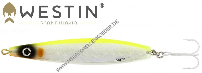 Der Salty Wobbler ist der Spezialist für flache Stellen und seichte Buchten . Er imitiert ein kleines Fischchen  und ist daher sehr  fängig auf Meerforelle. Der Wobbler ist jetzt schon ein Klassiker  und nur mit besten Komponenten ausgestattet wie z.B. VMC 9649 BN Drillingen. Man kann den Salty extrem langsam führen dadurch ist er im zeitigem Frühjahr und bei kaltem Wasser unschlagbar.