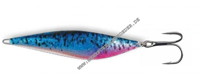 Orginal Uistin Wobbler der Meerforellenköder aus Finland . Durch die ausgeprägte S-Form hat der Wobbler ein lebhaftes Spiel beim einholen. Der Köder hat schon viele Fische wie zum Beispiel Wolfsbarsch , Meerforelle , Hornhecht und Dorsch überlistet.