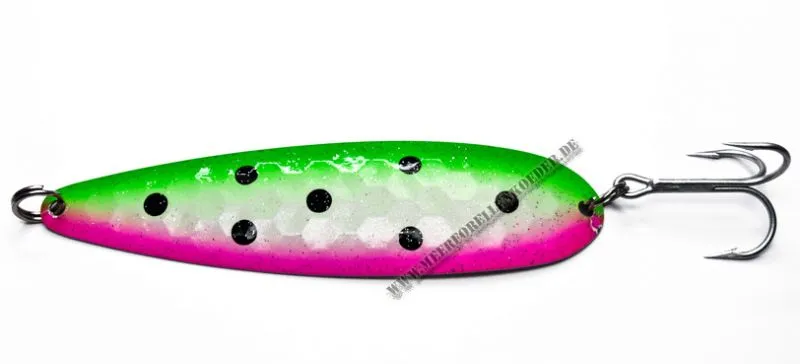Mit dem Salmon Star kaufen Sie einen Top Trollingblinker made in USA und lackiert in Dänemark bei OG-Paint. Die Köder werden nur mit besten Komponenten ausgestattet wie VMC Perma Steel Drillingen und starken rostfreien Rosco Sprengringen.