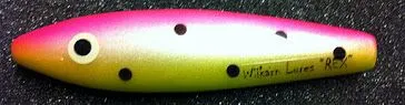 Der Name Wiikarn Lures hat einen sehr guten Ruf unter den schwedischen Trollinganglern. Hinter einem Dodger oder Flasher sind diese Lures 1.Wahl und eine richtige Geheimwaffe. Die Wiikarn REX Wobbler sind Trollingköder (8,7 cm) aus Kunststoff, entwickelt für die Fischerei auf Lachs, Forelle und Saibling in großen Seen uns an der Küste. Da die Köder wie andere Wobbler dieses Typs keine Eigenaktion haben fischt man sie am besten hinter einem großen Flasher. Der Rex Wobbler wird mit einem 80-100 cm Fluorocarbonvorfach mit einem Durchmesser von mindestens 0,50 mm hinter dem Flasher gefischt. Dann arbeitet er mit langsamen Drehungen, unregelmäßigen starten und stoppen wie ein verletzter Beutefisch. Einer Trollinggeschwindigkeit von 1,5-1,7 Knoten wird für den Winter und das zeitige Frühjahr empfohlen. Wenn das Wasser wärmer wird können Sie die Geschwindigkeit auf 2 Knoten erhöhen. REX ist ein guter Köder, wenn sich die Lachse auf relativ kleine Beutefische wie z.B. Sprotten / Brieslinge konzentrieren. Im Winter 2011-2012 wurden viele Lachse im Vätternsee auf den Rex Wobbler gefangen.